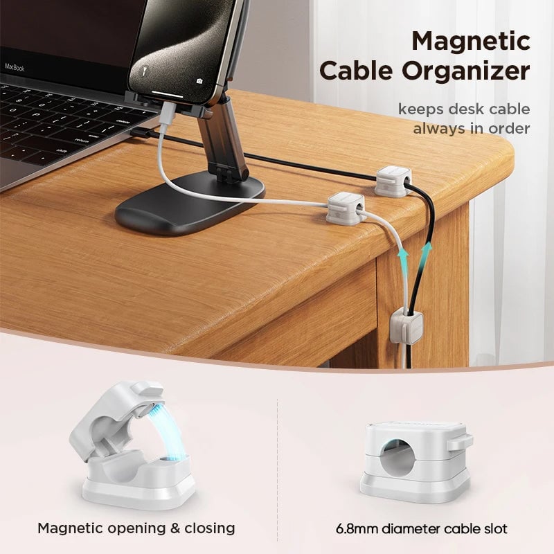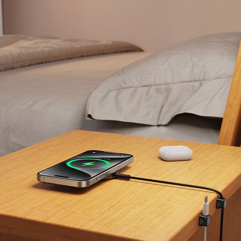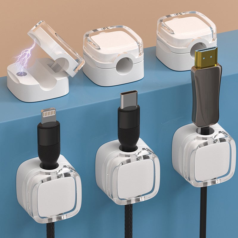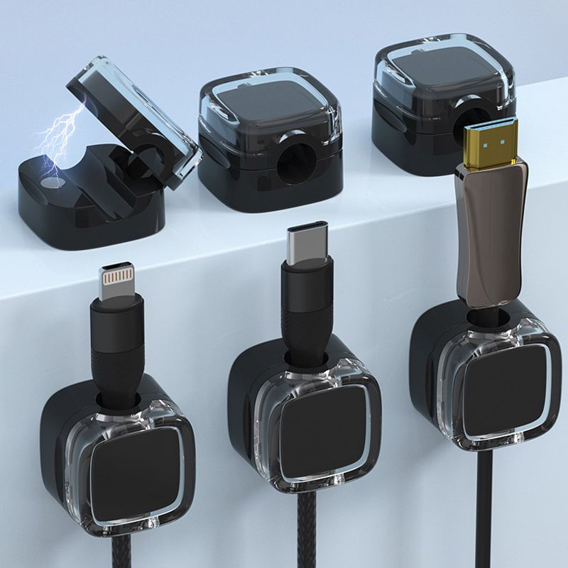 Fits 0.27" wires like Lightning, USB, AUX. Comes in a 6-pack for desks, nightstands, walls, even your car.
